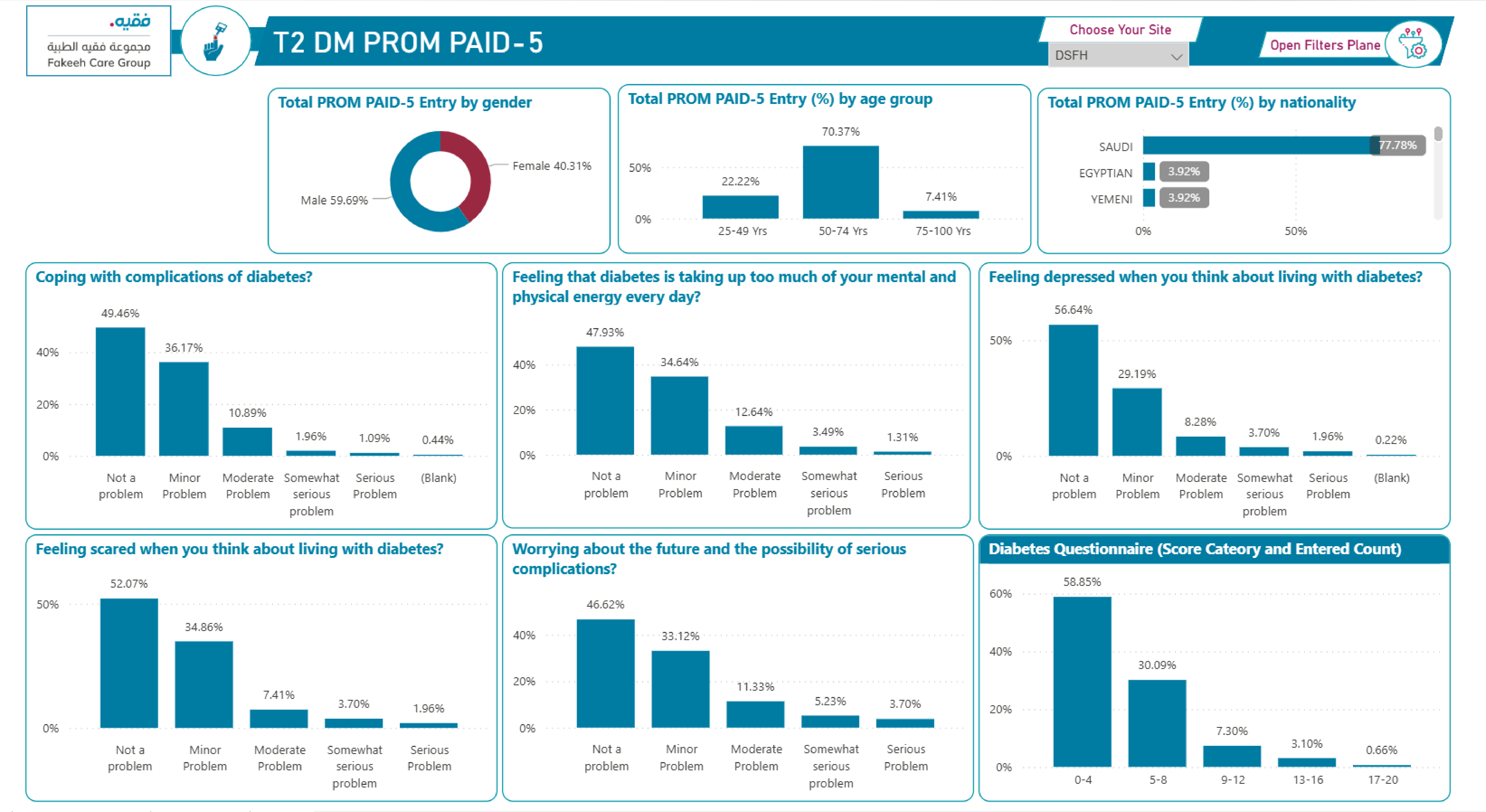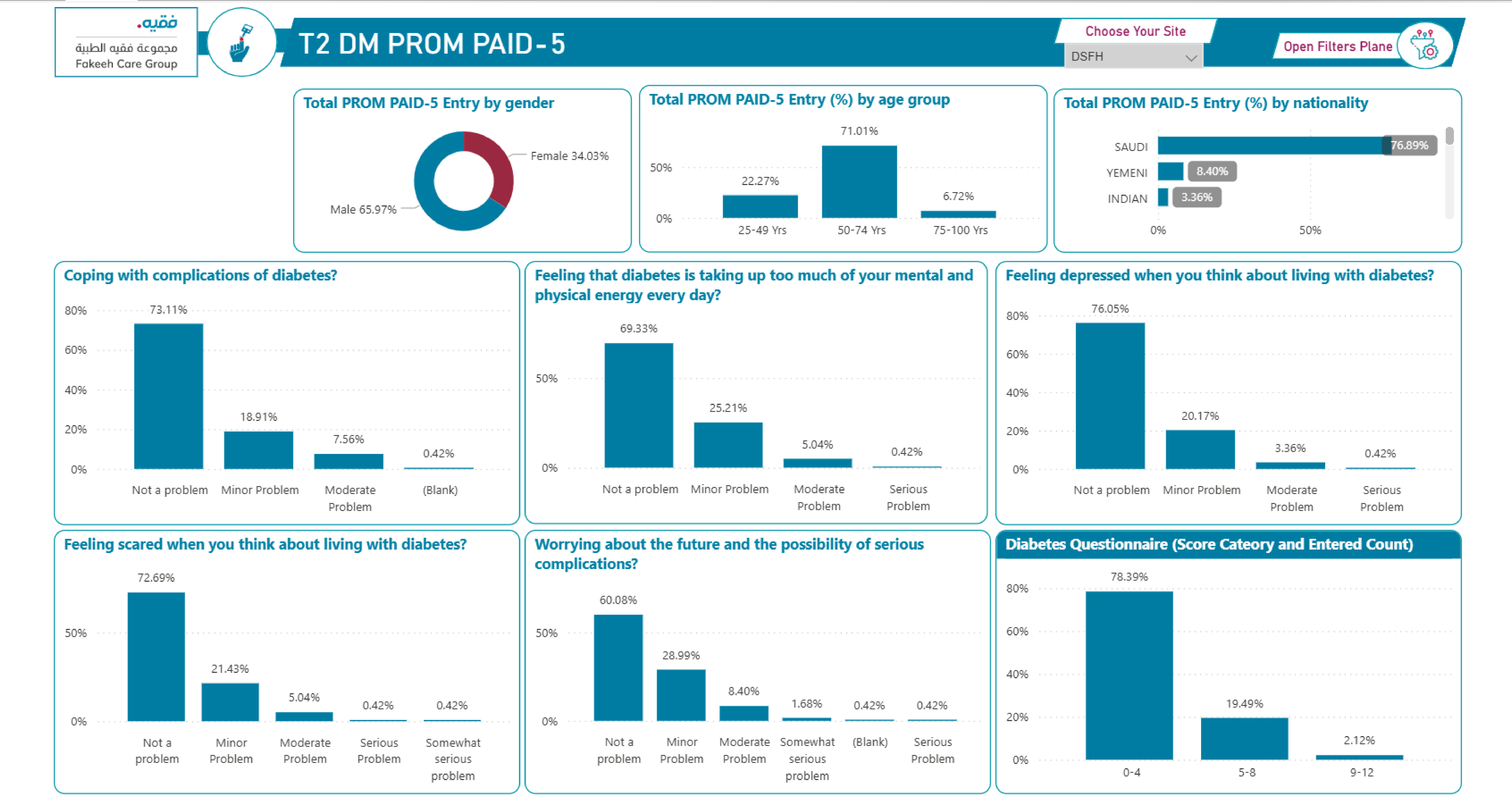 At Fakeeh Care Group, we are dedicated to enhancing patient care through the systematic collection and analysis of Patient Reported Outcomes (PROMs). PROMs are standardized questionnaires completed by patients to provide insights into their health status, quality of life, and treatment outcomes from their unique perspectives. This vital data not only empowers patients but also informs healthcare providers, enabling them to tailor treatments and improve healthcare delivery effectively.